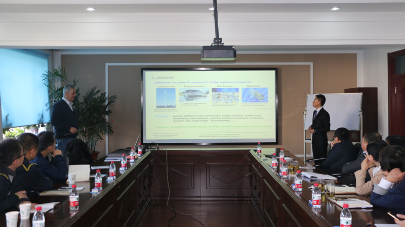 来访期间,伟德体育的科研人员与波萨特教授就钛合金的表面处理等方面进行了技术交流。波萨特教授以其专业的胶粘剂理论知识和丰富的胶接头表面处理经验,对钛合金处理方法进行了讲解,伟德体育科研人员对教授讲授的内容非常感兴趣,并对其在胶粘剂理论方面的深厚理论功底表示敬佩,双方对一些问题进行了深入探讨。双方希望能开展更加深入的合作,共同完成钛合金表面处理方法研究项目。